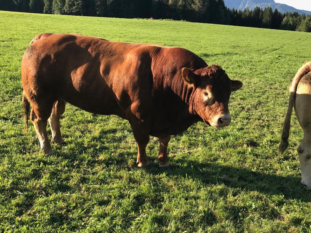Bereits seit 1974 wird am Poltenhof Mutterkuhhaltung betrieben. Meist tummeln sich rund 20 Mutterkühe mit Kälbern und Nachzucht und ein Zuchtstier am Betrieb. Jetzt, im September, sind sie draußen auf der Weide, ein Teil in Harham und ein Teil in Pfaffenhofen. Den Sommer über verbrachte der Großteil der Tiere auf der Weißsteinalm (Fischhorn) in Kaprun, der Rest, die „Sommerkühe“, war im Laufstall mit direktem Weidezugang am Heimbetrieb.