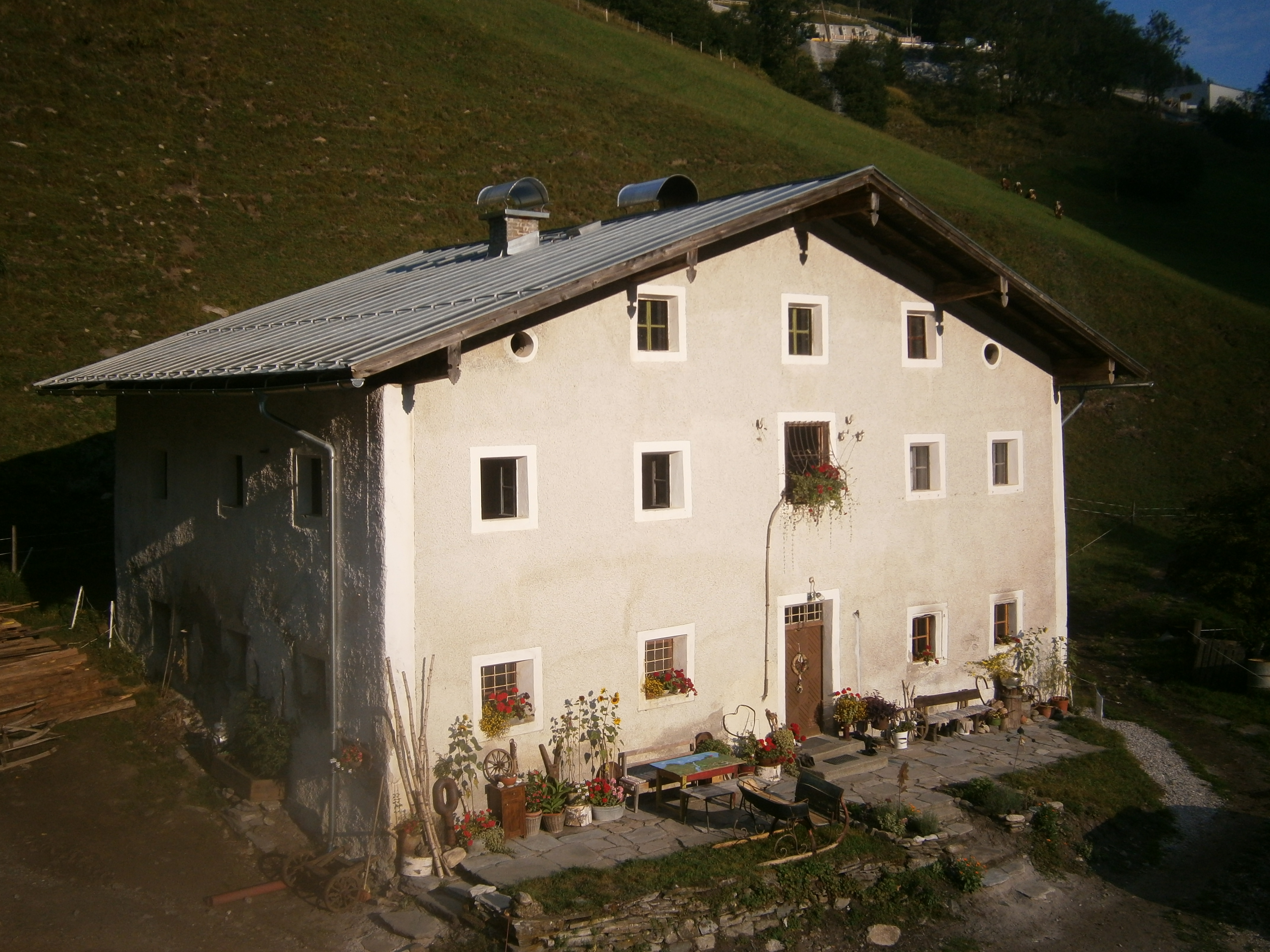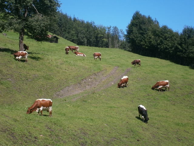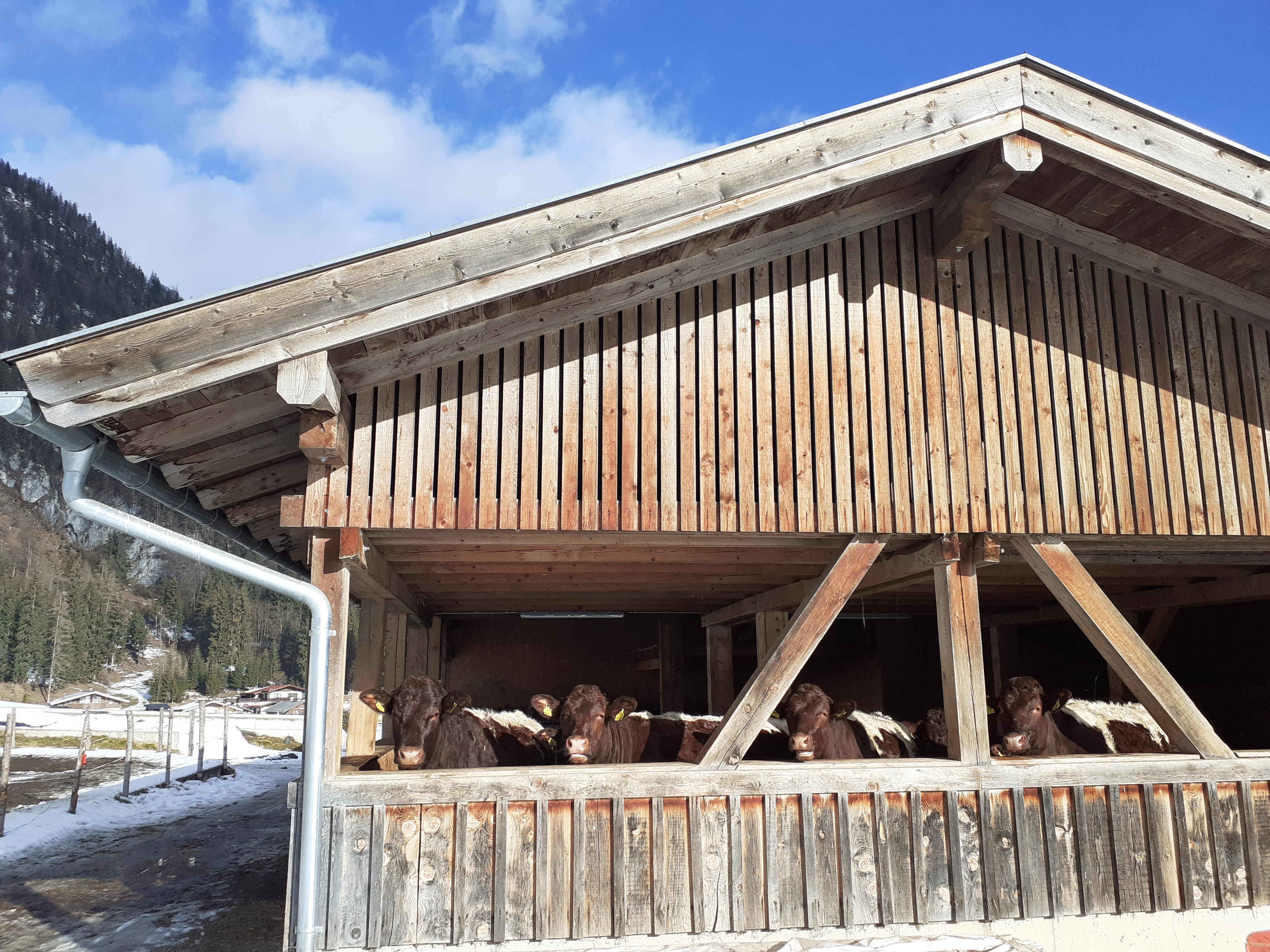| Betriebsgröße | 34,9 ha Grünland, davon 5 ha Hutweide (davon sind 14,6 ha Pachtflächen) 6 ha Wald 38 ha Alm, davon 23 ha Almfutterfläche und 3 ha Feld |