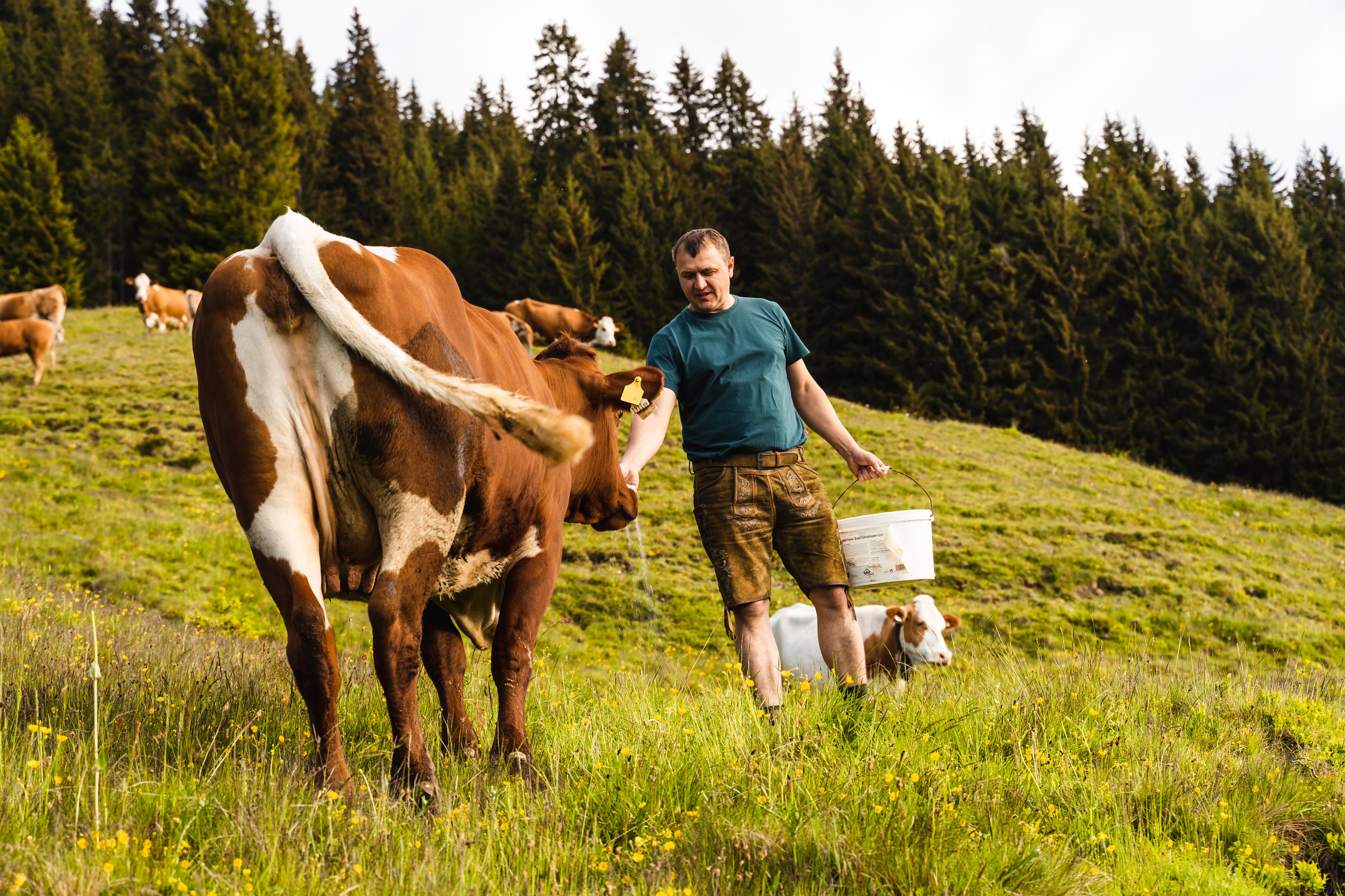 Im Sommer sind nicht nur die Kühe und Kälber auf der Alm, sondern die ganze Familie packt auf der Örgenbauernalm mit an. Lois und Kathi haben die Alm 1991 für Gäste geöffnet und sind im Sommer immer noch fast täglich oben anzutreffen, inzwischen gemeinsam mit Birgit und Alois. Besonders bekannt auf der Örgenbauernalm sind die Bladl, die es immer am Samstag gibt und die vielen selbstgemachten Produkte: Wurstwaren und Geselchtes vom eigenen Bio-Rind, hausgemachte Kuchen, Brot uvm. Auch die Kinder helfen schon fleißig mit, sowohl bei den Vorbereitungsarbeiten als auch auf der Alm selbst.